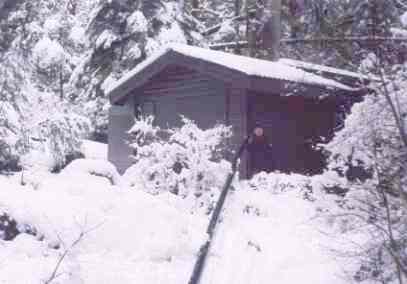 This remote Provincial Marine Park relied entirely on barged in propane for lighting and heat. During the early spring we built a small system ideally suited to the needs of the Park Ranger's cabin. Five hundred feet of penstock powers a twin nozzle turbine which charges a set of batteries. 1500 watts of AC, as well as 12 volt DC is available for lighting, radios, and some heat production.