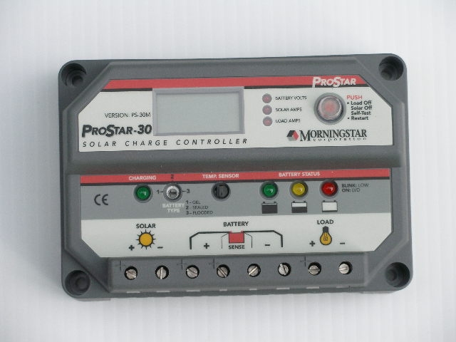Shown here is a Morningstar ProStar PWM controller with meter.